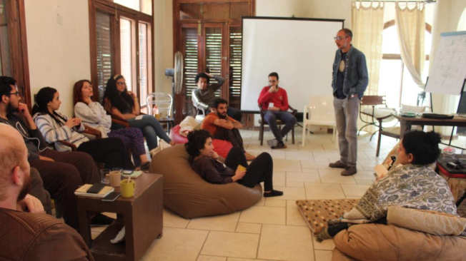 The Self-Reference Cinema workshop, a three-week workshop run by filmmaker Basel Ramsis, was held three times at Dahshur Residence: 31st March-17th April 2019, 14th April-3rd May 2018, 19th March-6th April 2017.